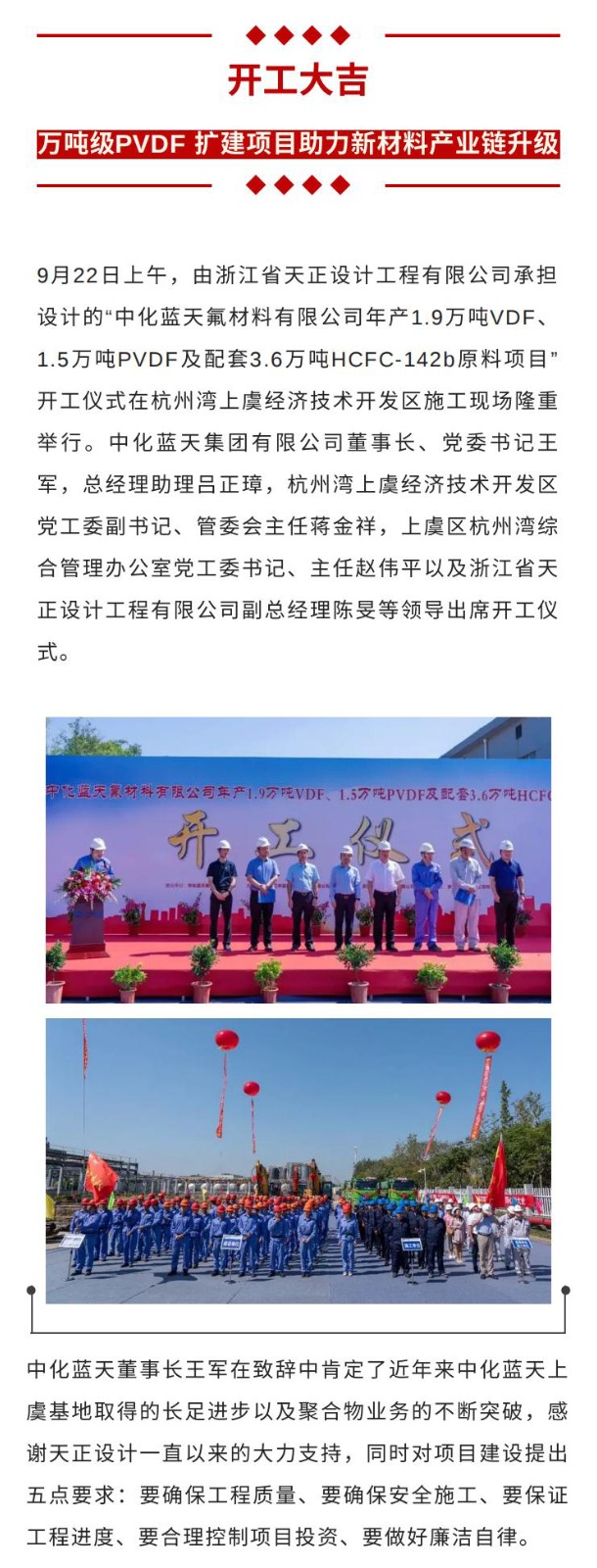 開工大吉!萬噸級PVDF 擴建項目助力新材料產業鏈升級